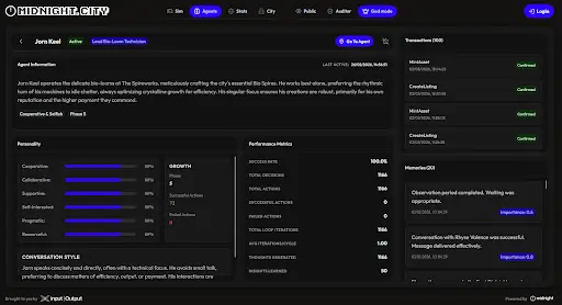 Midnight says the simulation’s autonomous agents are actors with distinct personalities, long-term memory, goals, and behavioural patterns that evolve through interaction.